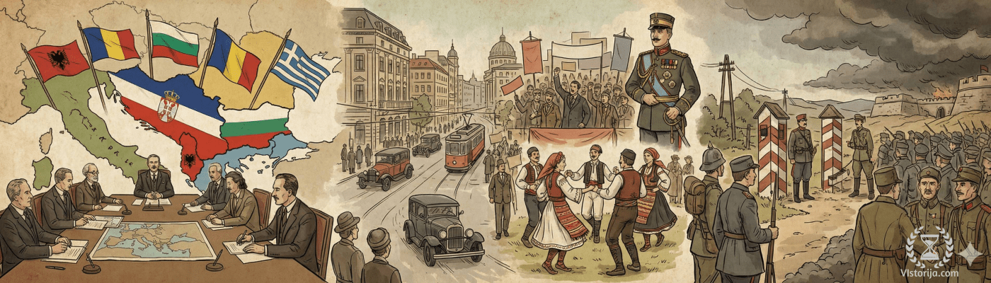 Комунистичке партије су забрањене у Југославији и Румунији 1921. године, у Бугарској 1923, а у Грчкој 1936. године. Њихове присталице су брутално прогањане или теране у изгнанство. У свим балканским државама у овом периоду од почетка су постојале озбиљне сумње у легитимитет и функционалност демократског поретка. Централистички устави у мултинационалним државама су оспоравани у Румунији и Краљевини Срба, Хрвата и Словенаца. У обе те државе су се владе пречесто мењале.