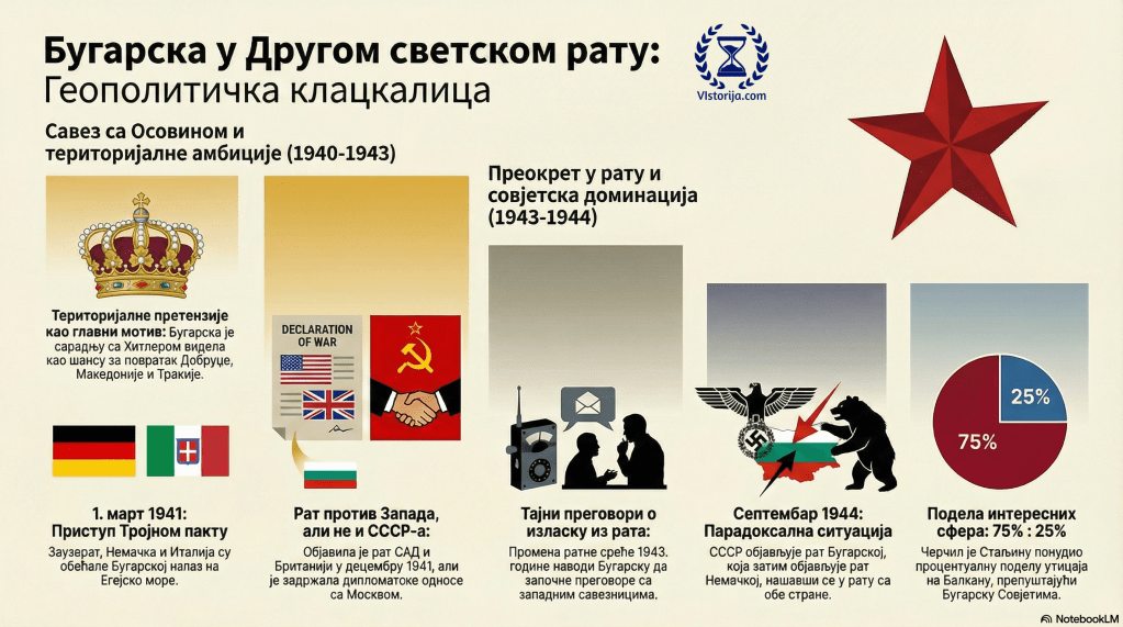 Договоривши се између себе о подели интересних сфера, Руси, Британци и Американци балканским народима, па ни Бугарској, нису планирали да после рата препусте суштинску самосталност у њиховим државама, него само формалну. У таквим околностима у Бугарској, оријентисаној ка СССР-у, завладали су њима идеолошки подобни комунисти.
