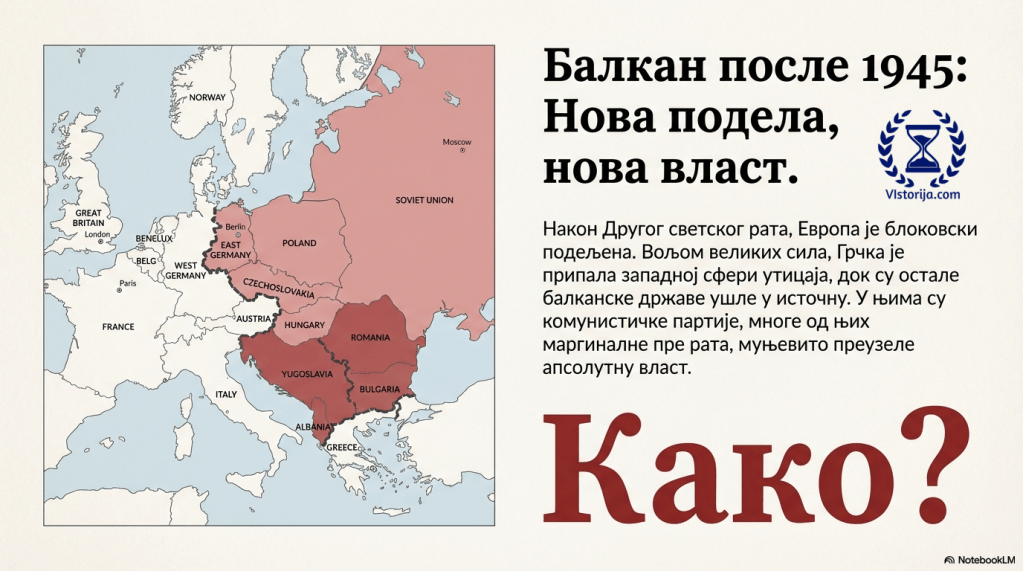 После Другог светског рата Европа је била блоковски подељена на либерални запад и комунистички исток. Вољом великих сила које су победиле у рату, на Балкану је Грчка сврстана у западну сферу утицаја, а остале државе у источну и њима су завладали комунисти. Три године касније закомпликовала се ситуација у Југославији, након разлаза Стаљина и Тита 1948. године, али је Југославија остала комунистичка, иако се удаљавањем од истока приближила западу и настојала да буде несврстана.