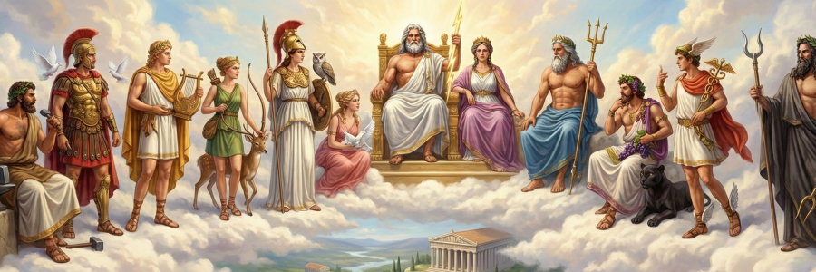 „Према Хесиодовој генеалогији (8-7. век пре Хр.), Зевс је окончао једну божанску династију мрачног и хаотичног порекла, која је врхунац доживела под његовим оцем, Кроном, који је имао обичај да прождире сопствене синове. Избегавши очево лудило захваљујући лукавству мајке Реје, Зевс је свргнуо Крона, поставши краљ богова; нова династија, небеска и олимпијска, дефинитивно ће учврстити… Read More Богови са Олимпа