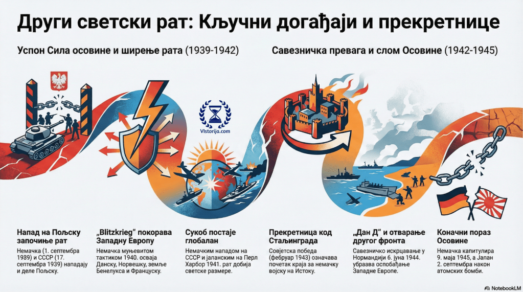 - Почетак Другог светског рата – напад Немачке на Пољску и ширење СССР